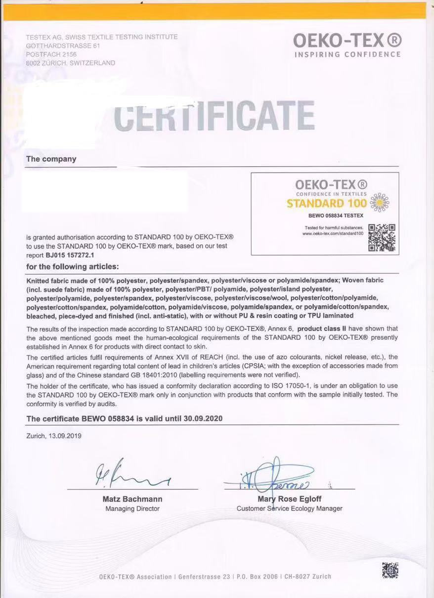Atest Oeko-tex Savoy + Gordon